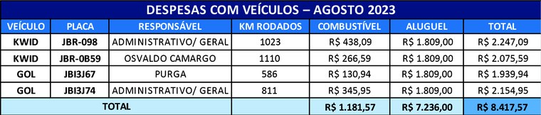 | Aluguel Carro | R$ 7.236,00 |