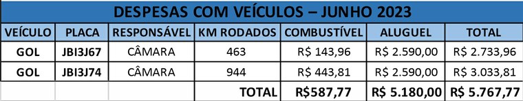 DEMONSTRATIVO DE DESPESAS COM OS VEÍCULOS